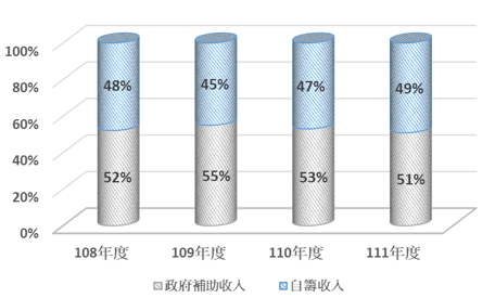 政府補助收入 | 學校教學研究補助收入 | 483,374,000 | -0.76% | 500,466,000 | 3.54% | 503,359,000 | 0.58% |